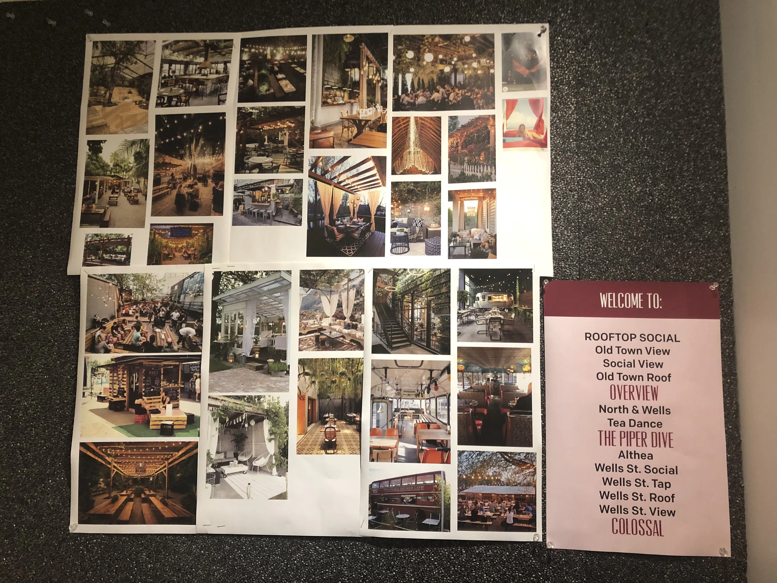 Early Summer 2018, my co-worker Sara Dennis and I attended a meeting with the owners of The Second City and future partners and executives from The fifty/50 Restaurant Group. We talked through the idea of using the massive roof above Second City for a bar that has games. Sara and I took the suggestion and ran with it, collaborating to create 4 different concepts that align with the prompt. Our personal favorite was “the perfect tailgate.” Basically we wanted to take the stress out of bringing a cooler and a grill, add great furniture, and worry a bit less about the game or concert while focusing on making memories with your friends.